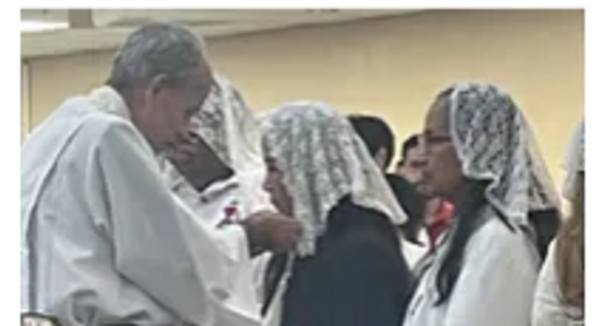 Communion Song: Sacred Heart of Jesus, draw us closer to Your love ……Make our hearts more like Yours. Finally, Fr. Chris said: “We get to work. You have been commissioned. Now our work is to live our baptism and commissioning.” Fr. Brian places a membership pin on a newly commissioned member.
